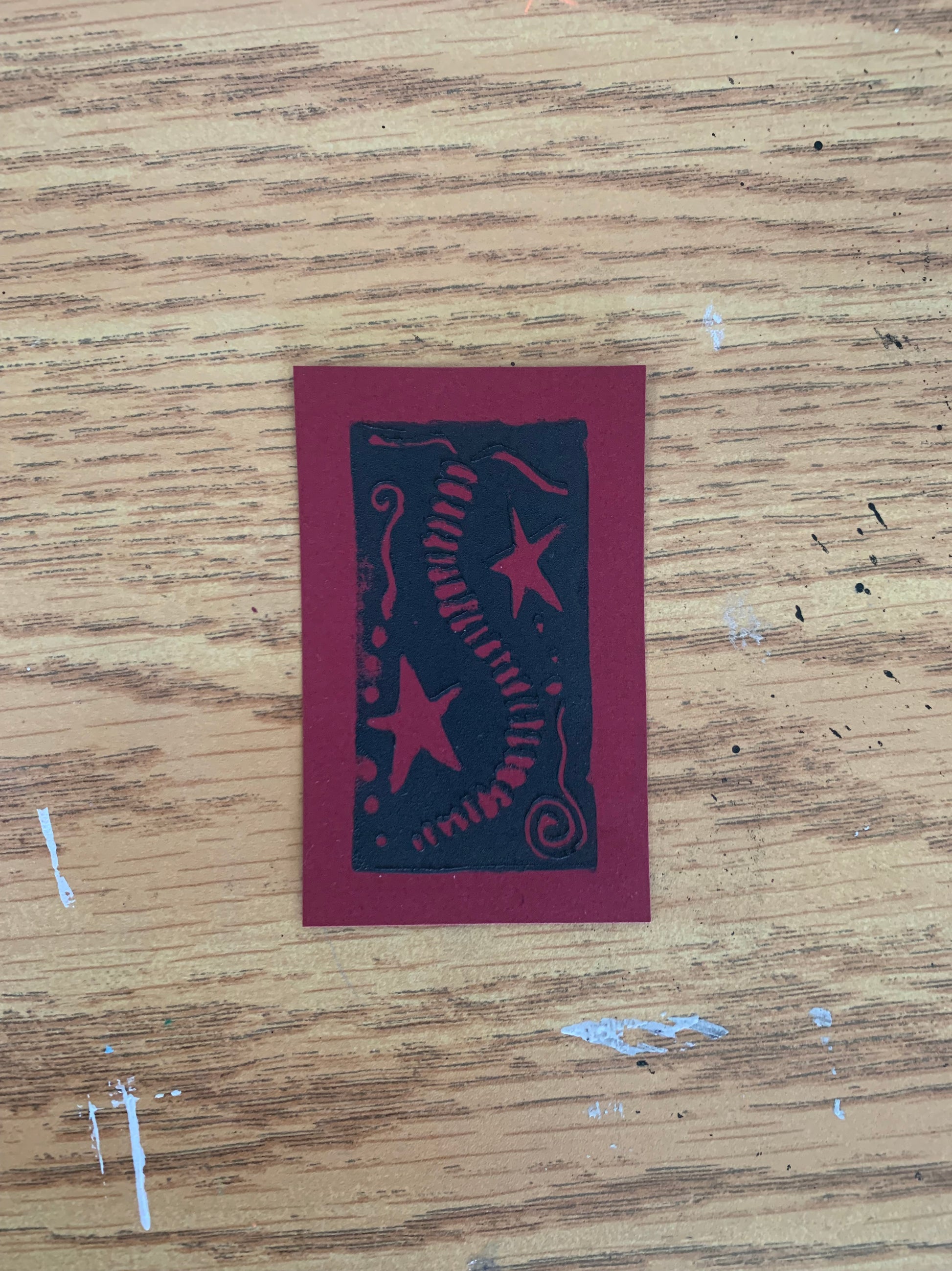 Hand stamped lino print